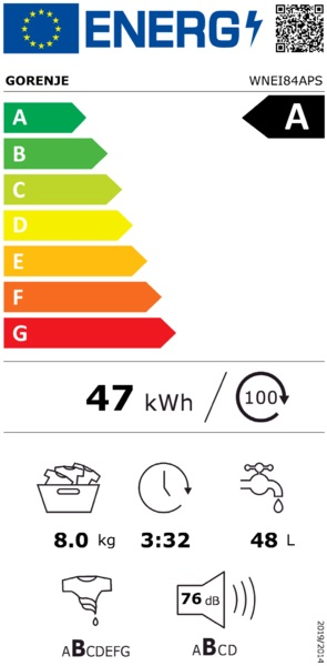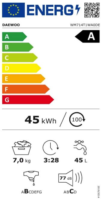 | Energieeffizienzklasse nur Waschzyklus (2019/2014/EU) | A |