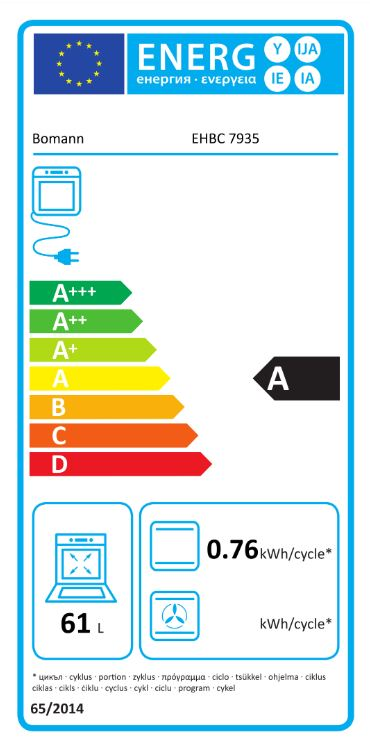 | Energieverbrauch (Umluft/Heißluft) | 0.69 kWh |