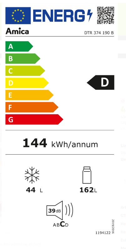 | Durchschnittlicher Energieverbrauch in kWh/Jahr | 162 kWh |