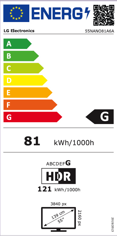 | Energieeffizienzklasse (2019/2013/EU) | G |