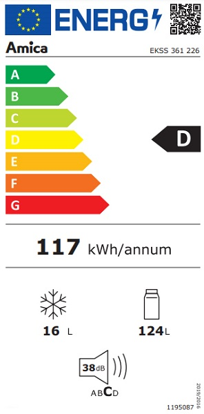 | Durchschnittlicher Energieverbrauch in kWh/Jahr | 117 kWh |