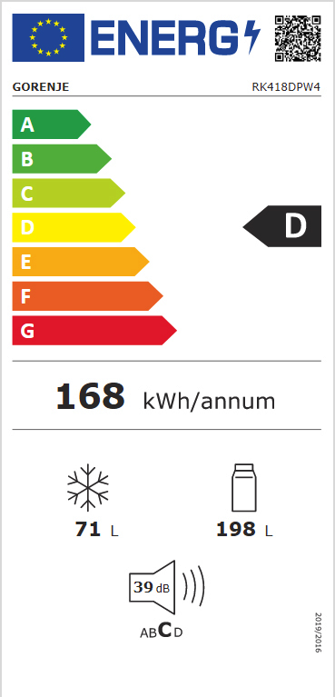 | Energieeffizienzklasse (2017/1369/EU) | D |