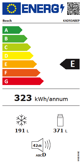 | Durchschnittlicher Energieverbrauch in kWh/Jahr | 323 kWh |